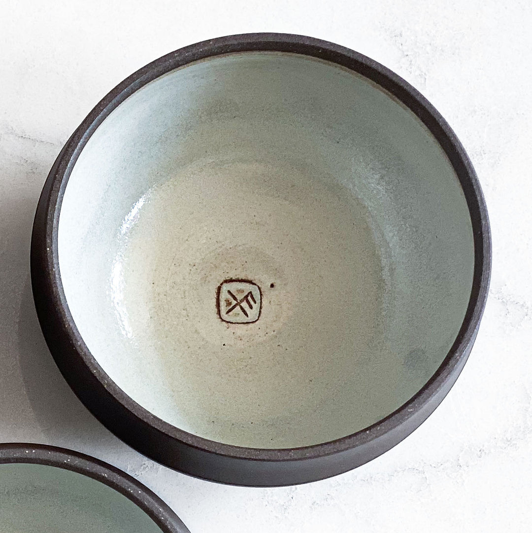 We finish the interiors of our vessels with a variety of food and microwave-safe glazes. Each item is handmade and kiln fired, which leads to some beautiful variations between batches. The examples below will give you a good idea of what your piece will look like.